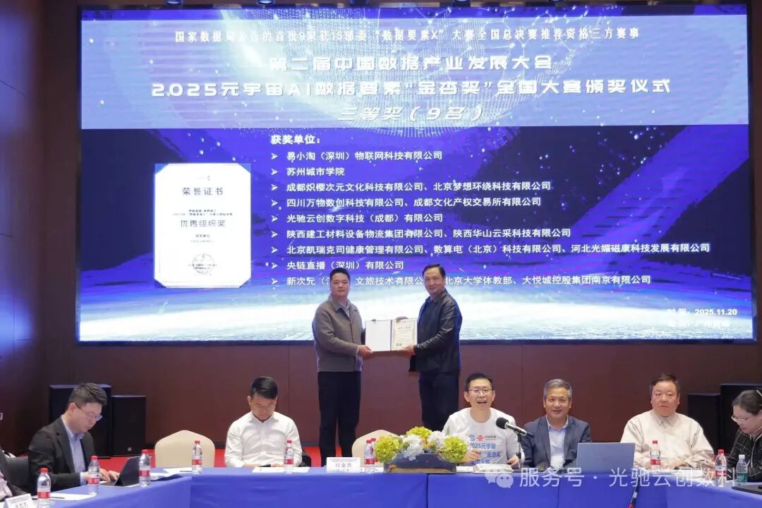 据悉,2025元宇宙AI数据要素“金杏奖”颁奖仪式已于11月20日在广州隆重举行,光驰云创受邀出席,领取由主席院士等签发并盖章的荣誉证书。未来,双方将以此次获奖为契机,深化高校设备在共享经济领域的多元化合作。